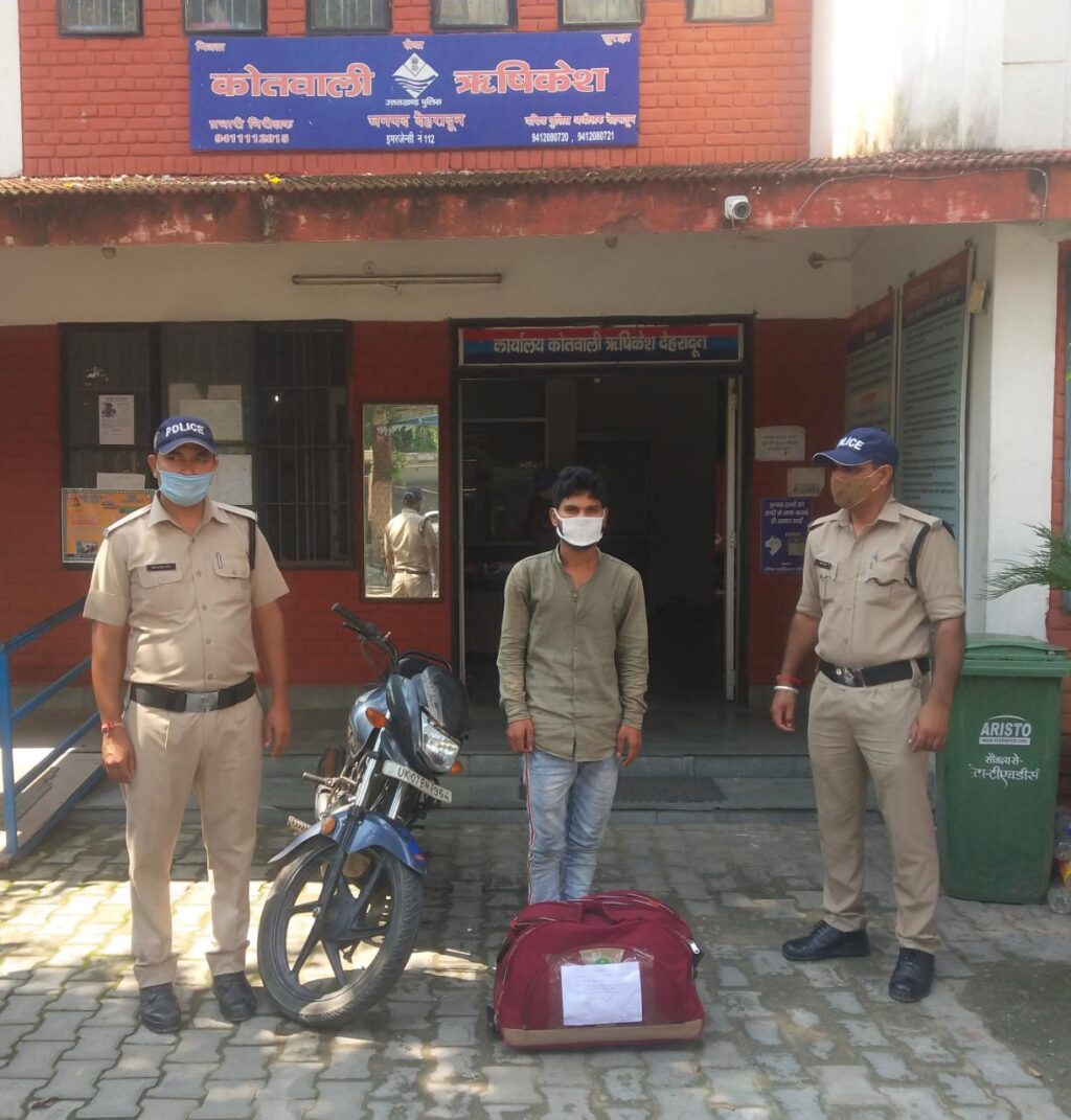 शनिवार को पुलिस रेलवे ब्रिज निकट नटराज चौक ऋषिकेश के पास चैकिंग कर रही थी। इस दौरान हौंडा ड्रीम बाइक सवार को चेक किया गया तो उसके पास एक कट्ठै में अवैध 10 किलो 560 ग्राम गांजा के बरामद हुआ। आरोपी की पहचान आशीष मुरली (24) पुत्र शिवजी निवासी गांव रसड़ा जिला बलिया उत्तर प्रदेश के रूप में हुई। वर्तमान में वह गगन तोमर दुर्गा चौक के सामने भानियावाला में किरायेदार है। थानाध्यक्ष ने बताया कि अवैध नशा तस्करी रोकने लिए टीम गठित की गई। टीम शराब तस्करों के ठिकानों पर और अवैध शराब बिक्री वाले स्थानों पर दबिश दी जा रही है। साथ ही शराब तस्करों को दबोचने के लिए वाहनों की चेकिंग की जा रही है।
