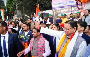 अभाविप की शोभा यात्रा के स्वागत में सम्मिलित हुए मुख्यमंत्री धामी, पुष्पवर्षा कर किया स्वागत