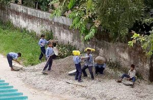 विद्यालय में छात्रों की संख्या करीब 200 है। सोमवार को दो शिक्षक भी छुट्टी पर थे। डाक का काम भी था, ऐसे में दोपहर के समय छात्र बिना बताए विद्यालय में हुए गड्ढों को भरने के लिए बजरी लेने पहुंच गए। जैसे ही मुझे पता चला बच्चे बजरी भरकर ला रहे हैं, मैंने उन्हें वापस विद्यालय बुलाया। रही बात फावड़ा और तसला कहां से आया तो बगल में ही कुछ मजदूर काम कर रहे थे। बच्चों ने उनसे यह लेकर यह काम किया।
