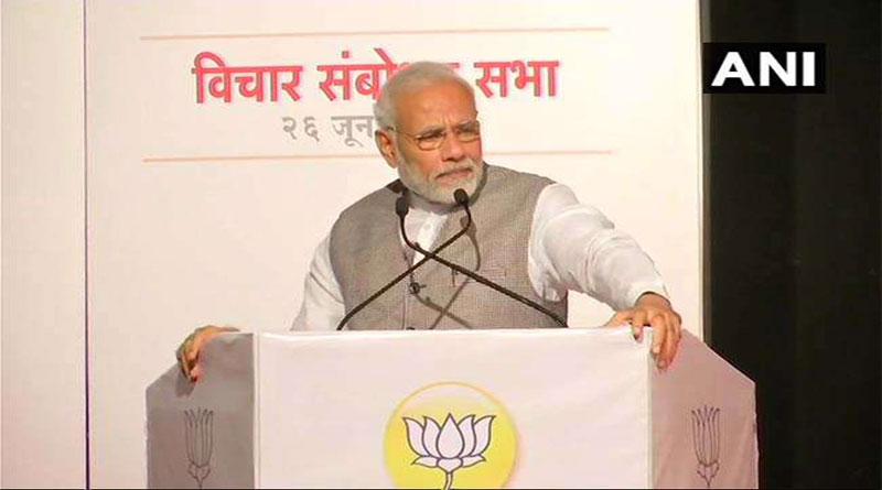 नई दिल्ली । प्रधानमंत्री नरेंद्र मोदी मुंबई में न्यूमरीन लाइंस स्थित बिरला मातोश्री सभागृह में एक कार्यक्रम को संबोधित कर रहे हैं। यहां उन्होंने आपातकाल और हालिया कर्नाटक चुनाव पर कांग्रेस पर जमकर हमला बोला। उन्होंने कहा कि आपातकाल लगाकर कांग्रेस ने देश में एक बहुत बड़ा पाप किया है। साथ ही उन्होंने ये भी कहा कि हर वक्त ईवीएम का रोना रोने वाली कांग्रेस को कर्नाटक चुनाव के समय़ क्या ईवीएम याद नहीं आई?